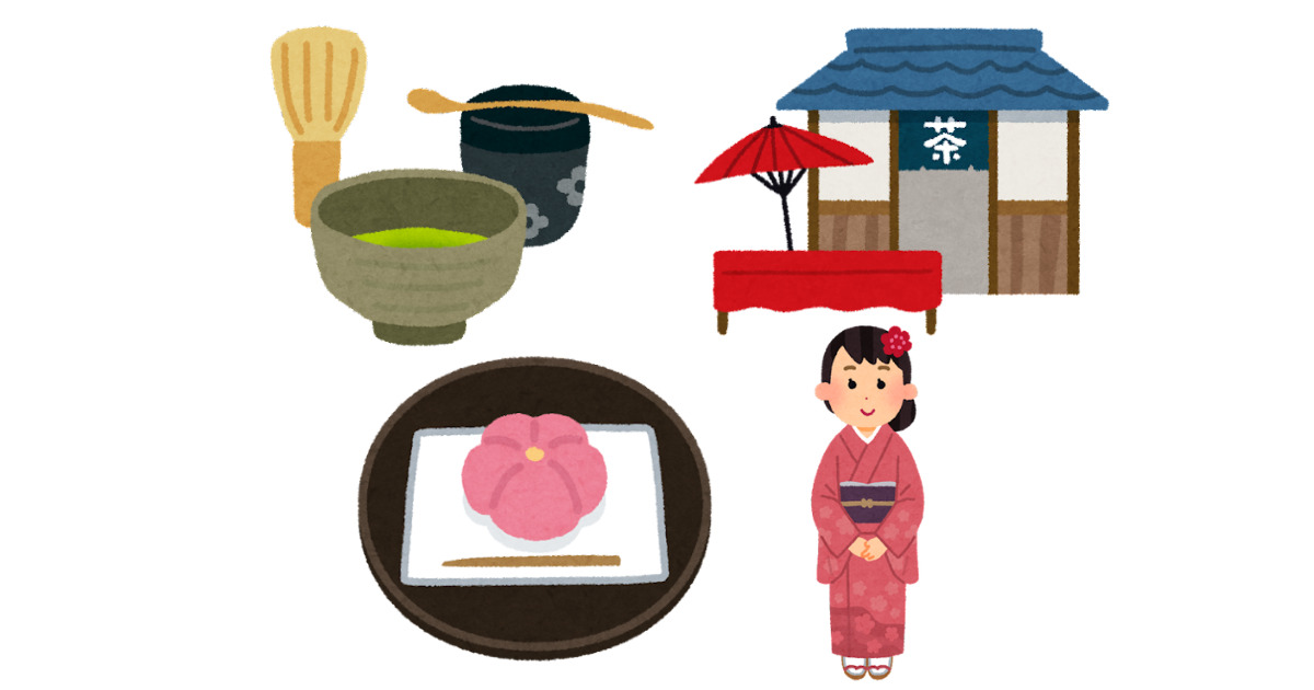 ・抹茶を飲んでいる女の子のイラスト